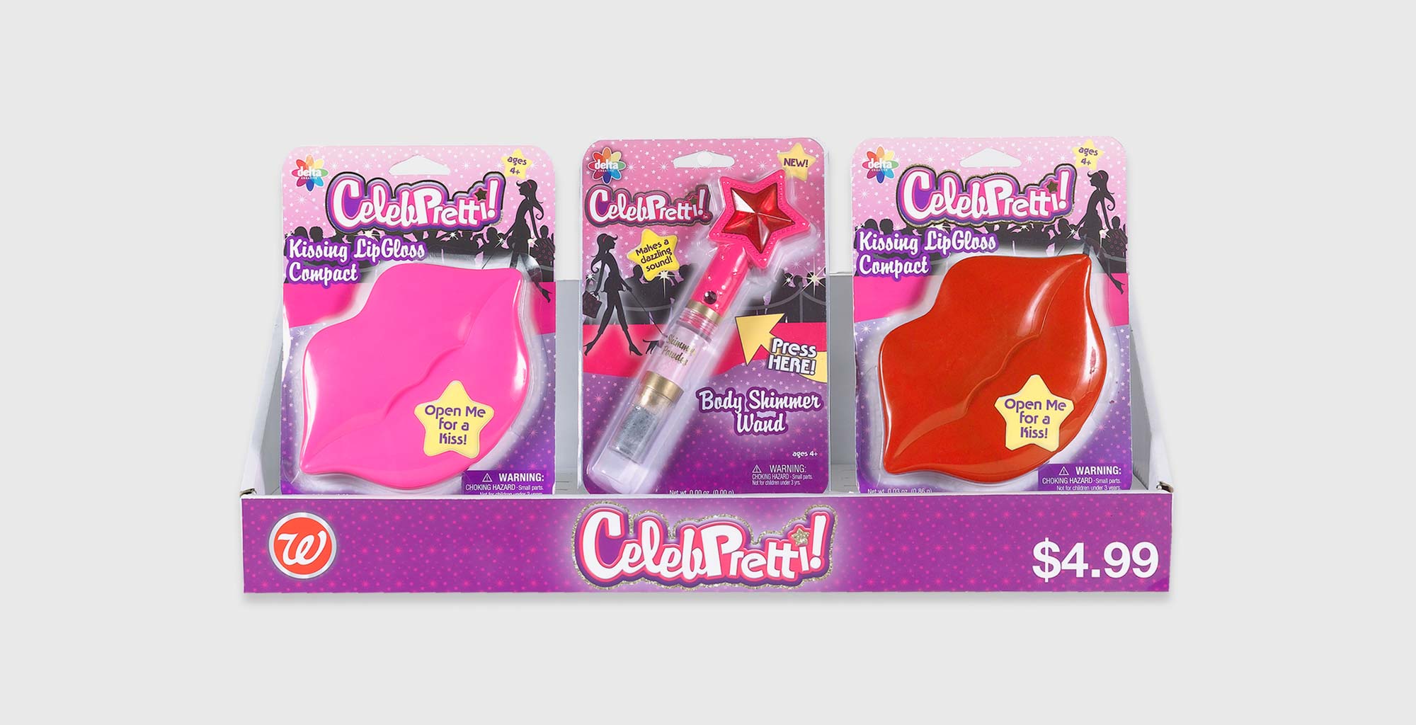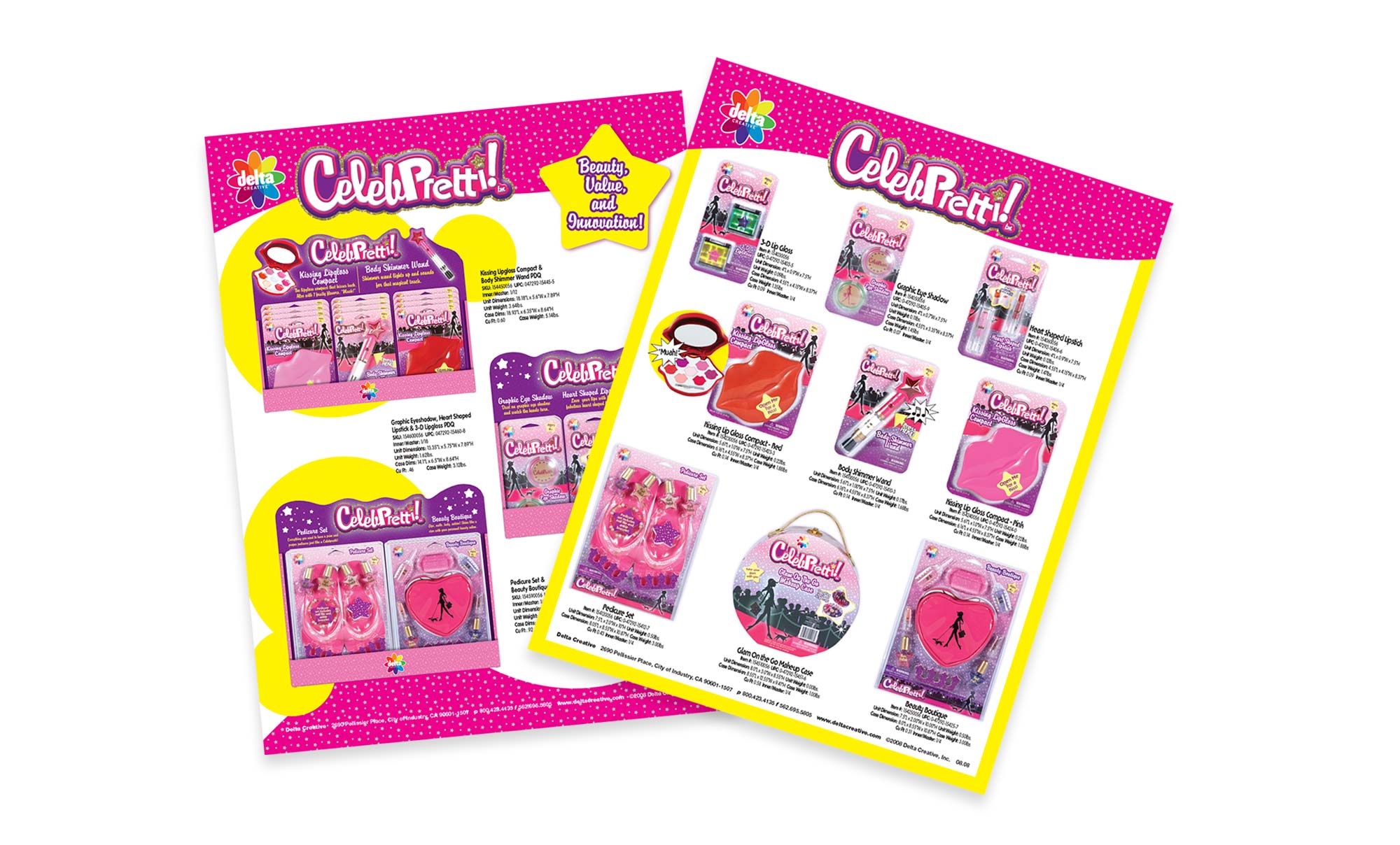 CCELEBPRETTI!™ is a line of uniquely developed girls role-play cosmetics with a play on the words “Celebrity” and “Pretty”. Brand development includes logo design, packaging, graphics and visuals for sale suport materials.