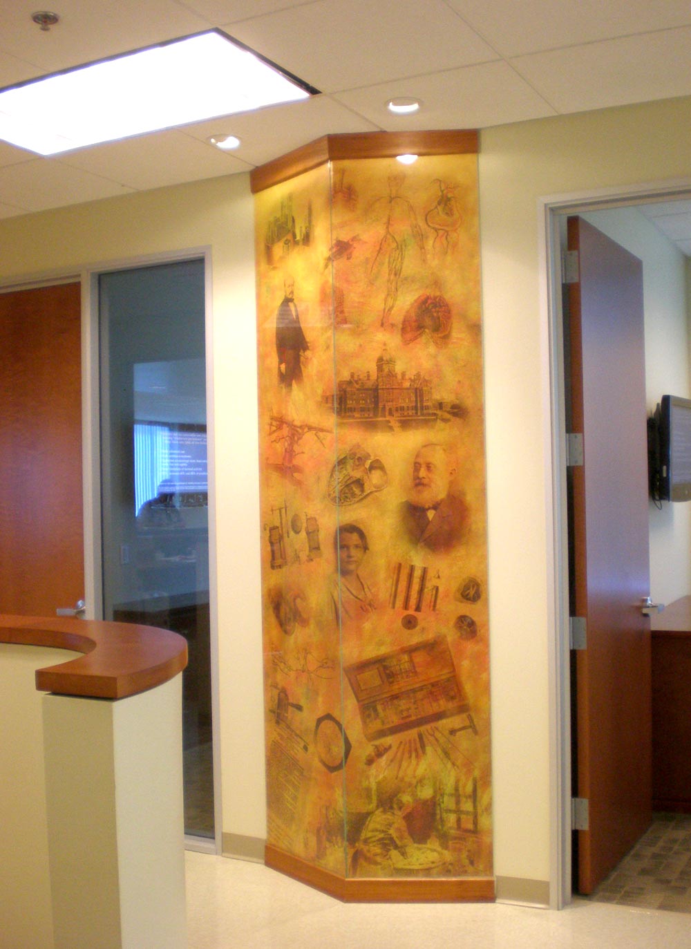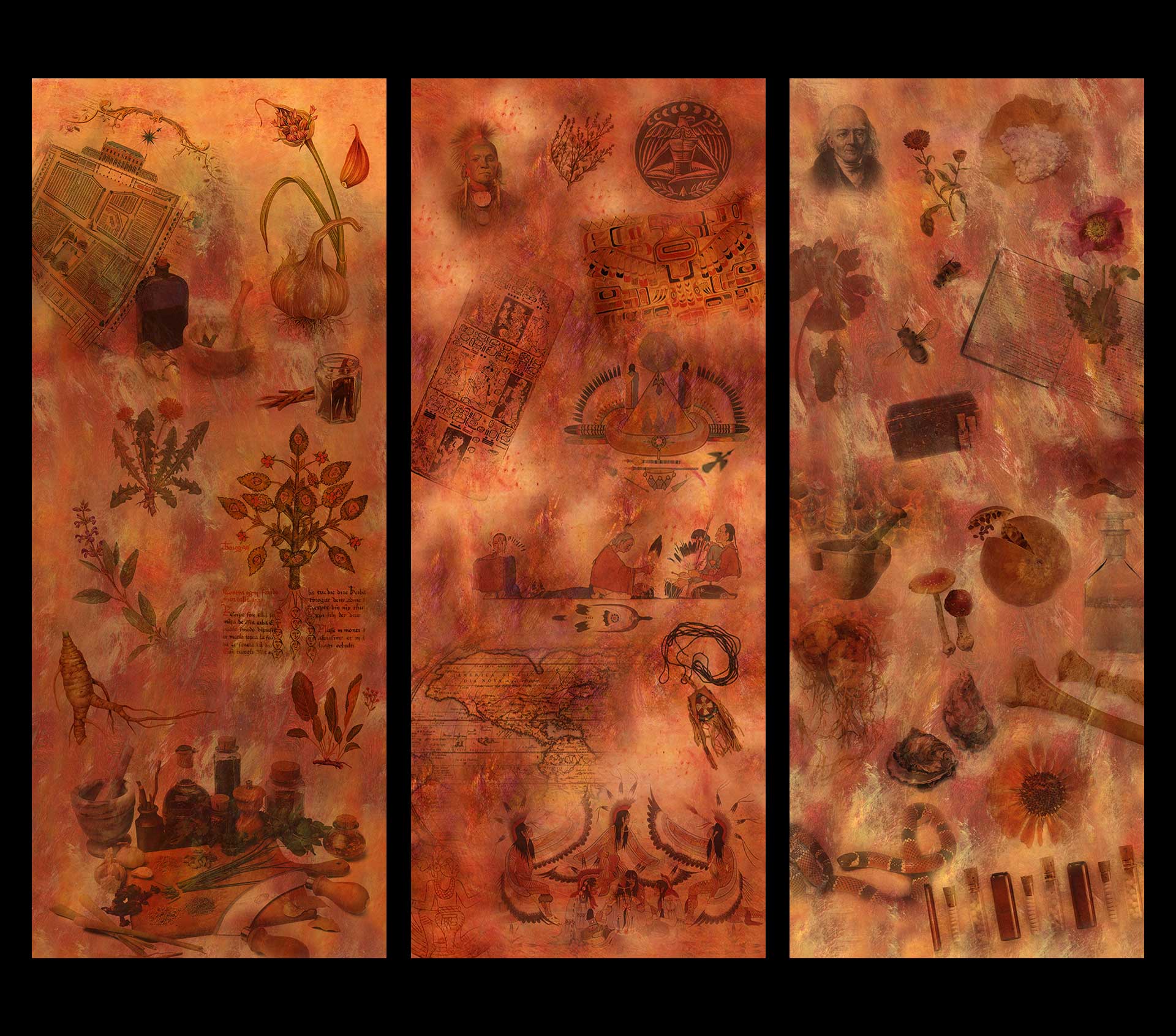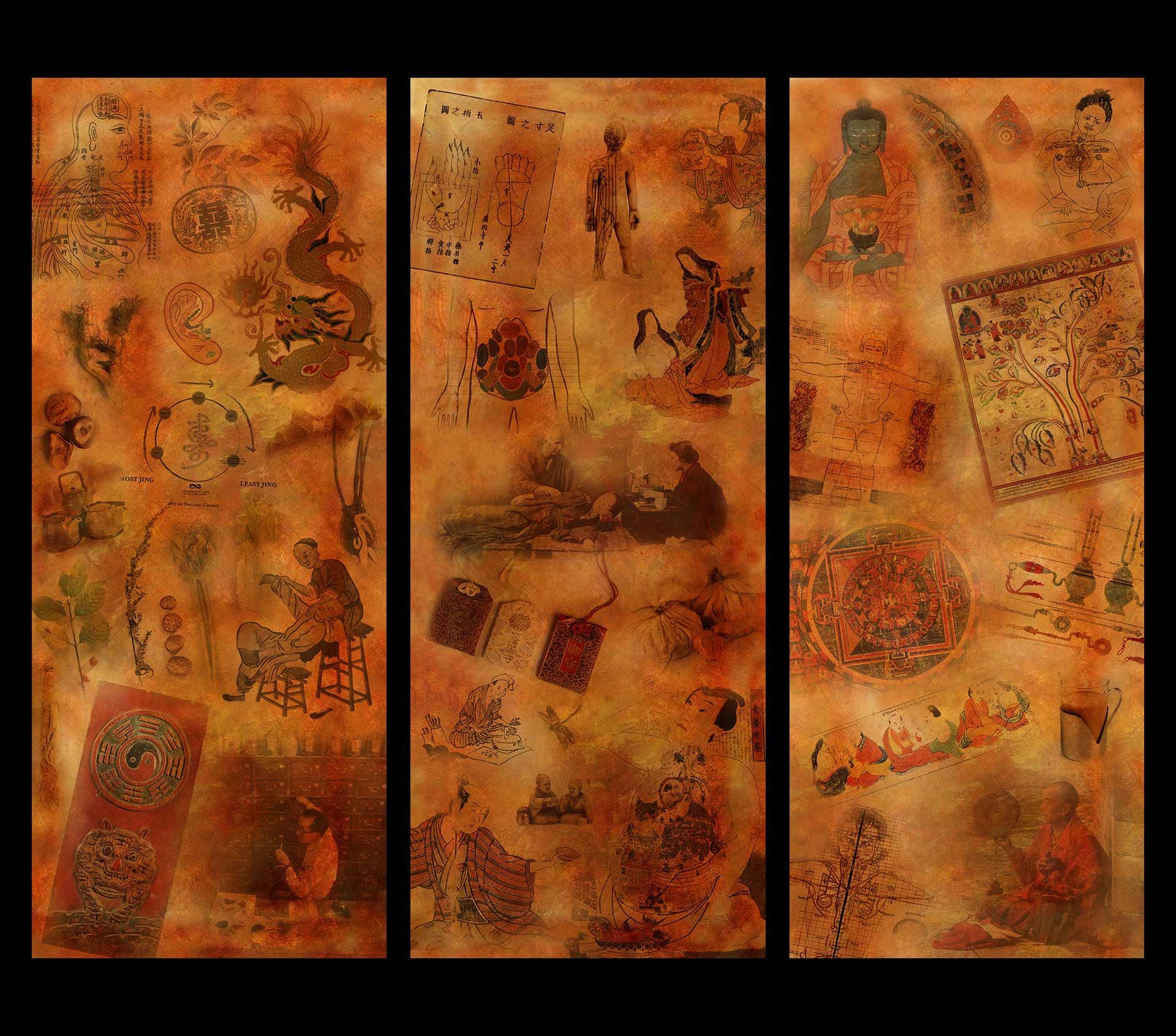 A series of murals was created for Sierra Medical Group clinic in Palmdale, California. It consisted of 13 panels dedicated to history of medicine, alternative and culturally diverse medicinal systems. The final result was a combination of hand-painted backgrounds with digitally manipulated photos and drawings. The panels were printed on canvas and installed on the walls in the clinic's hallways and offices.