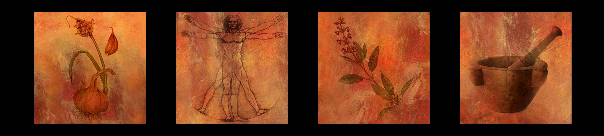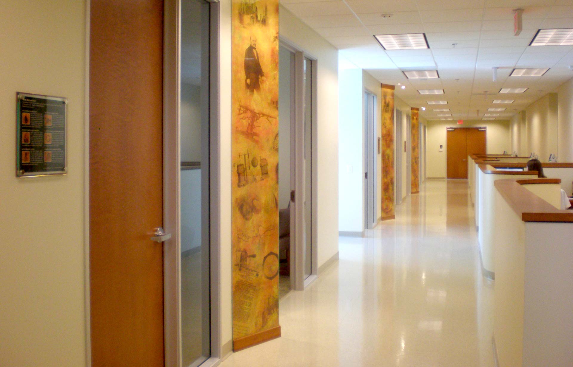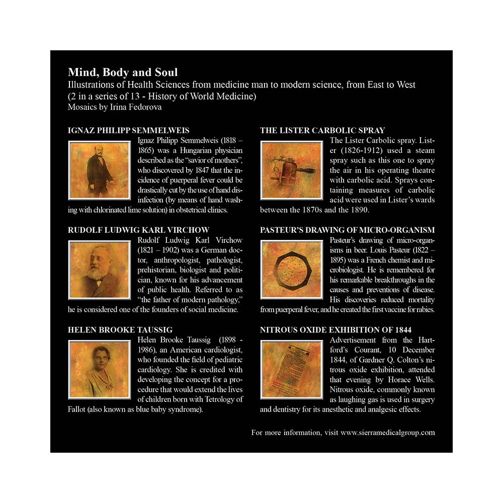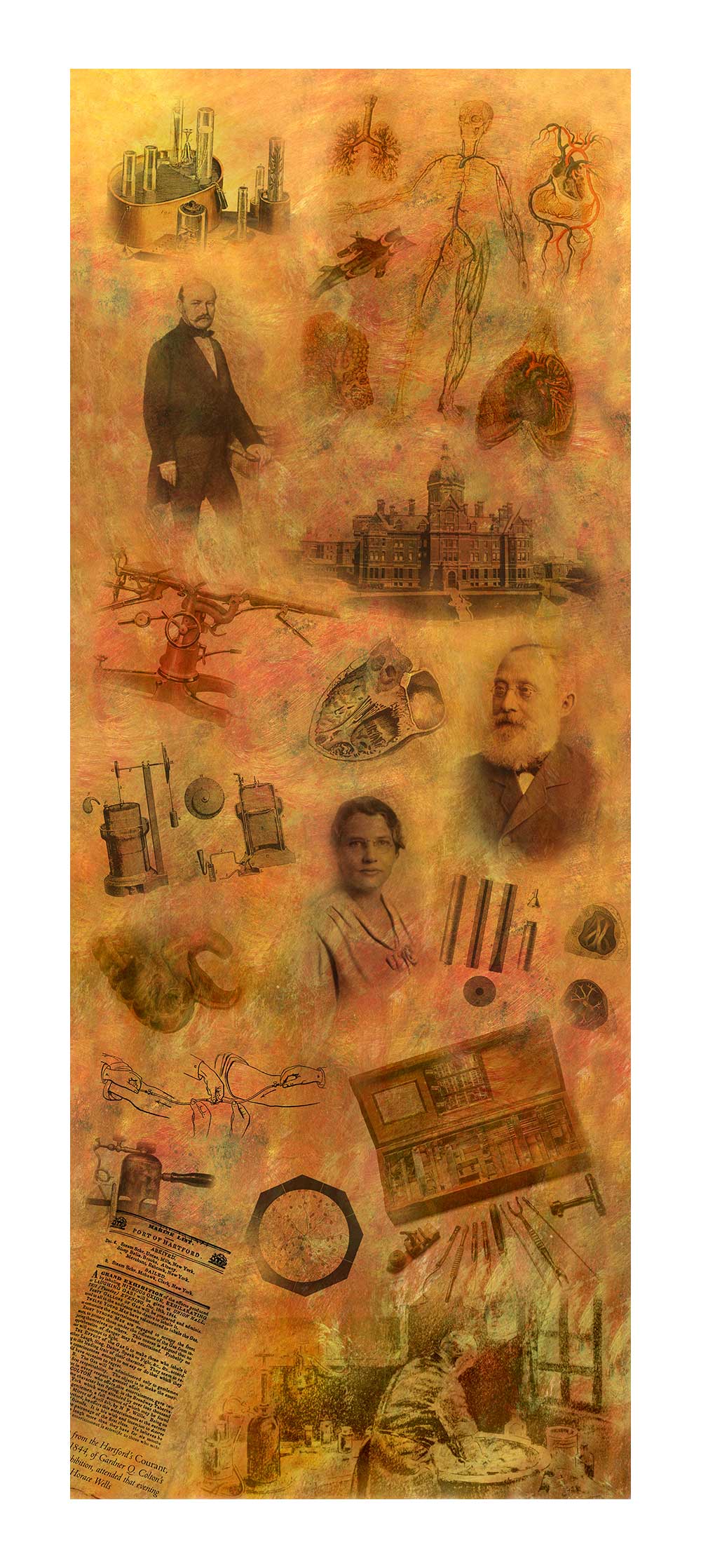 A series of murals was created for Sierra Medical Group clinic in Palmdale, California. It consisted of 13 panels dedicated to history of medicine, alternative and culturally diverse medicinal systems. The final result was a combination of hand-painted backgrounds with digitally manipulated photos and drawings. The panels were printed on canvas and installed on the walls in the clinic's hallways and offices.