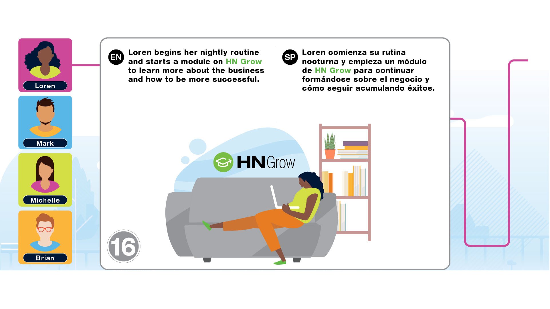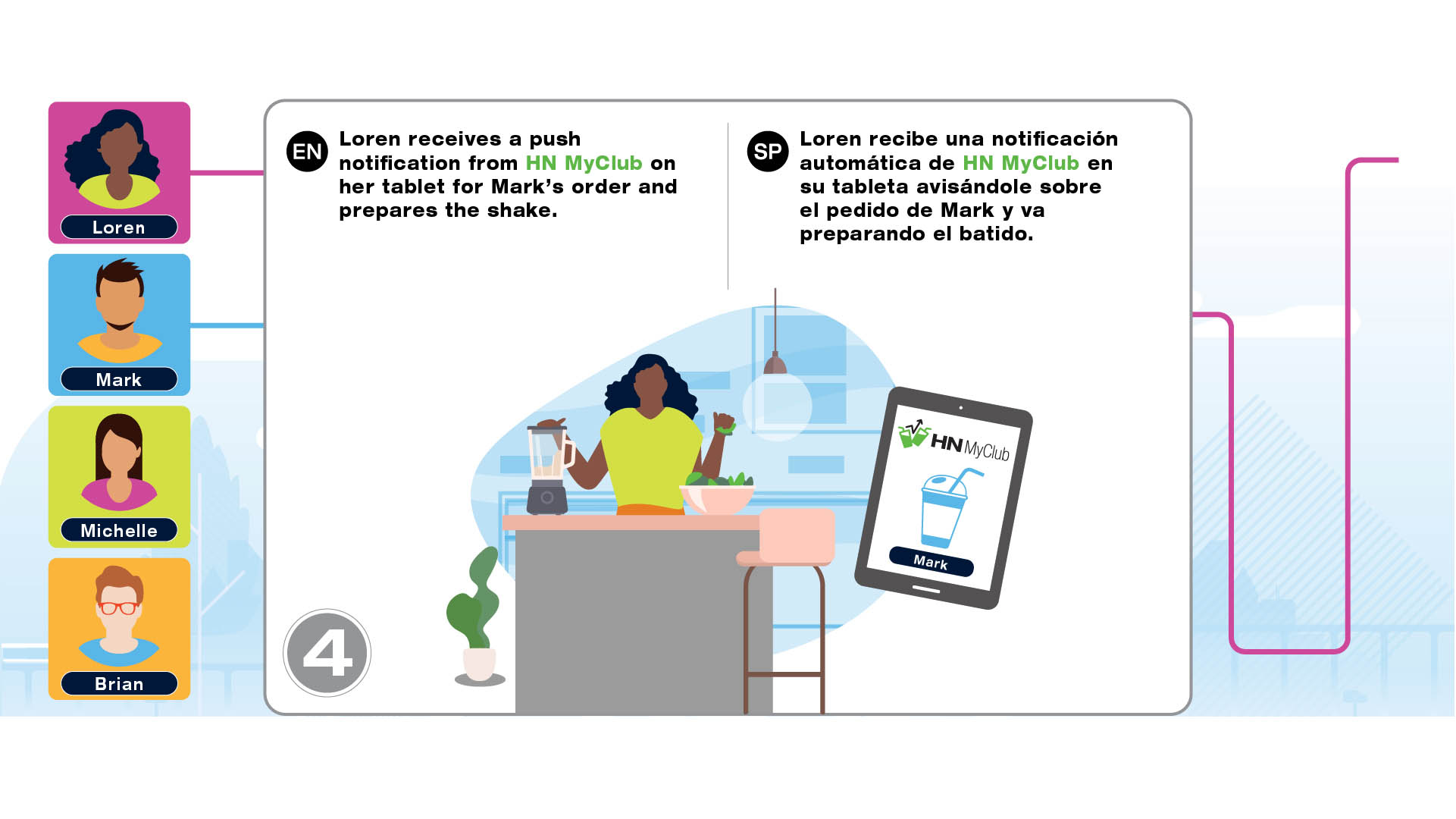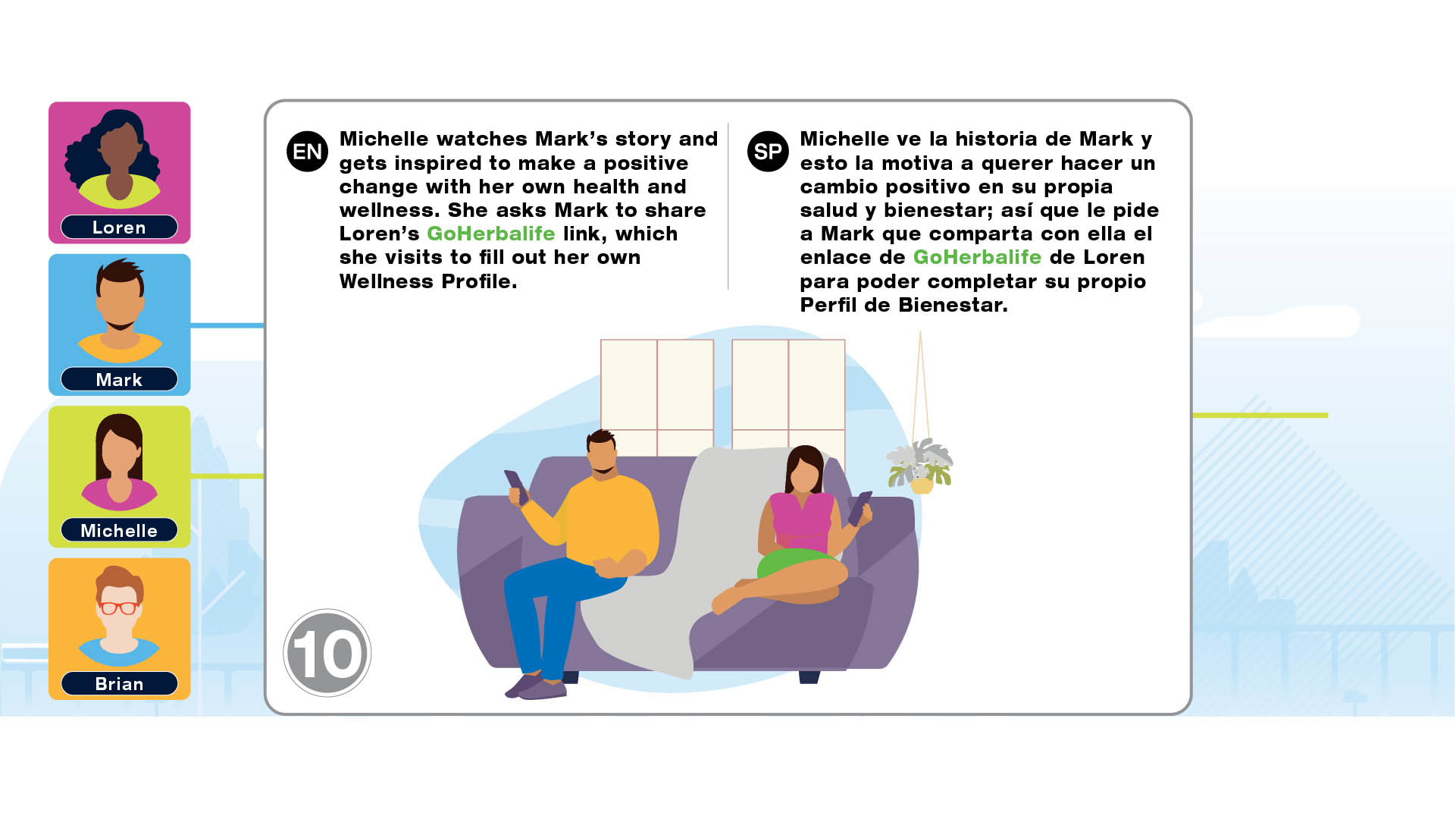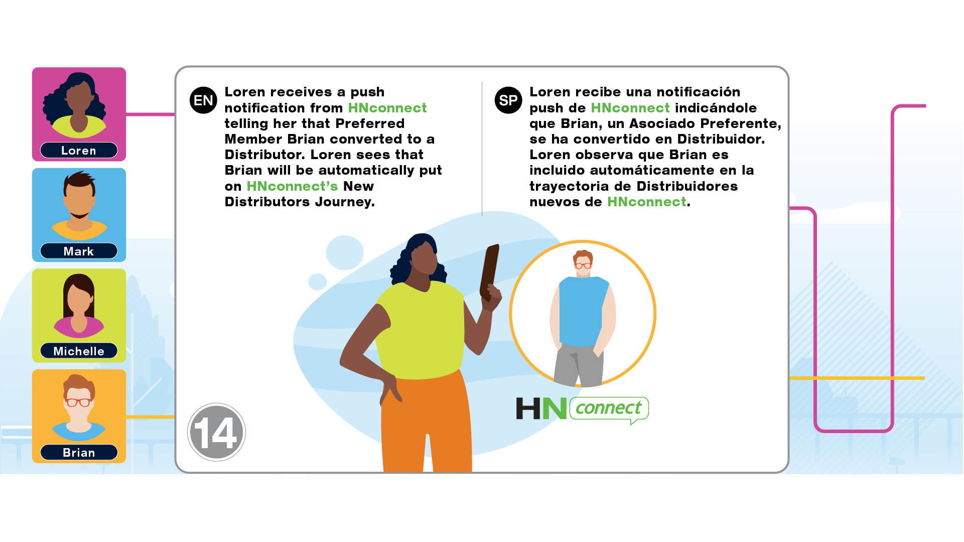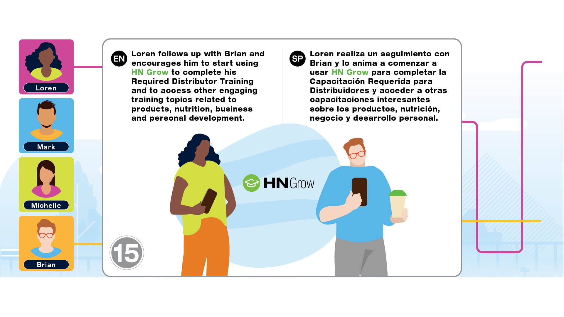Infographic project for Herbalife Nutrition Technology Summit 2021 to introduce the tools such as HN MyClub, HN Connect, HN Grow, GoHerbalife and MyHerbalife Customer Direct. The illustrations tell the story of distributor and customer journey of everyday life and how technology tools help them to run the business and stay connected.