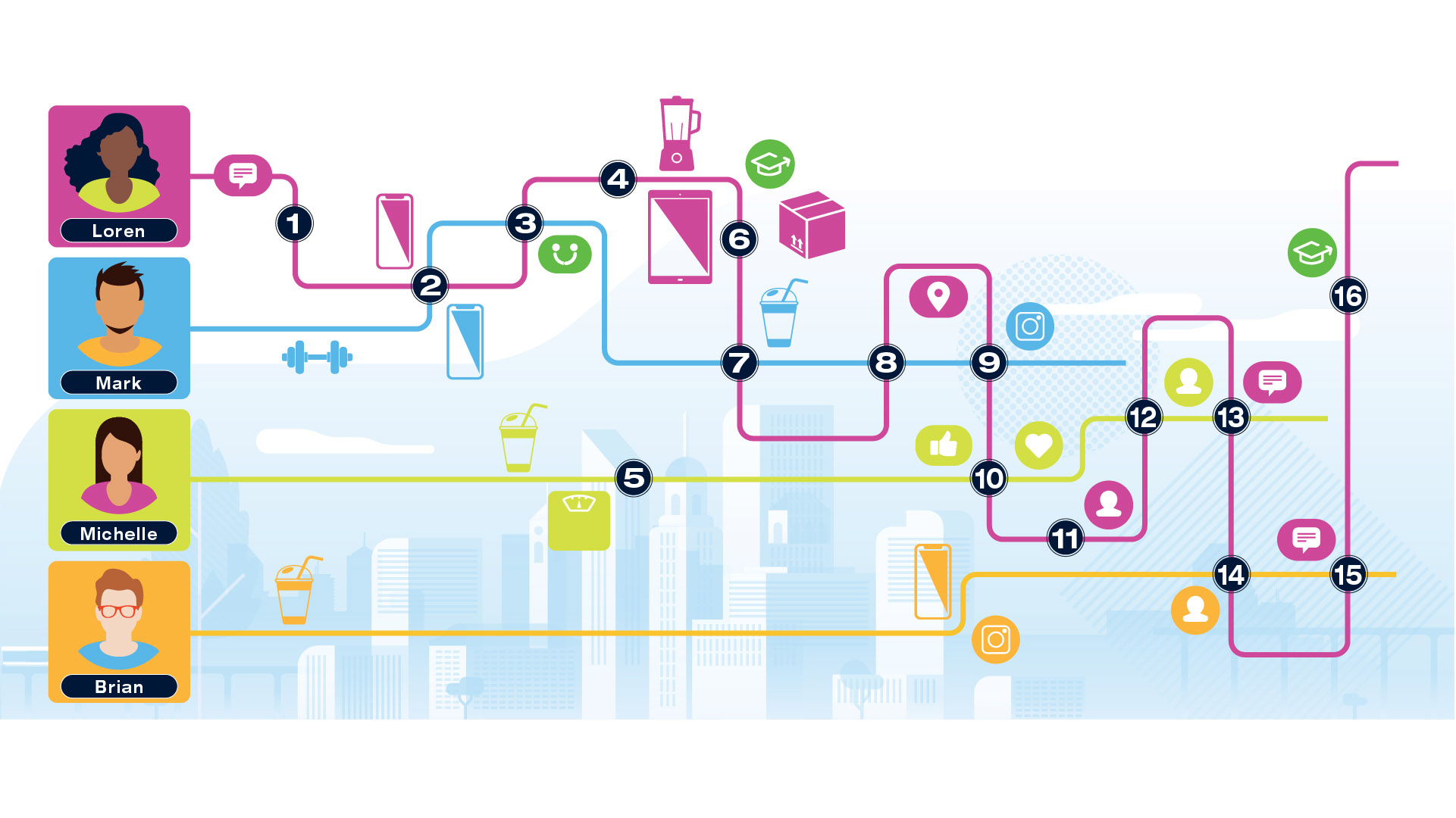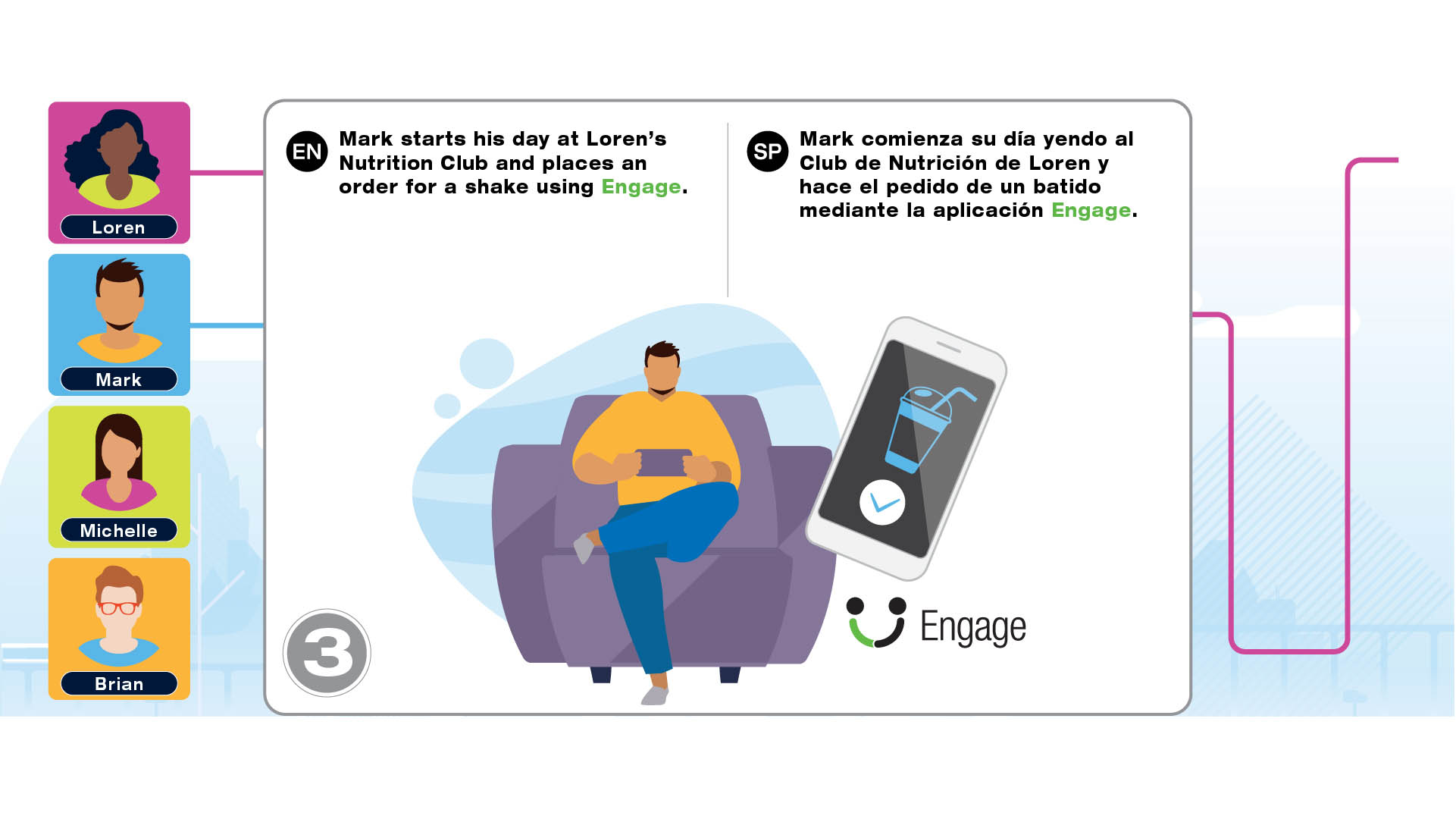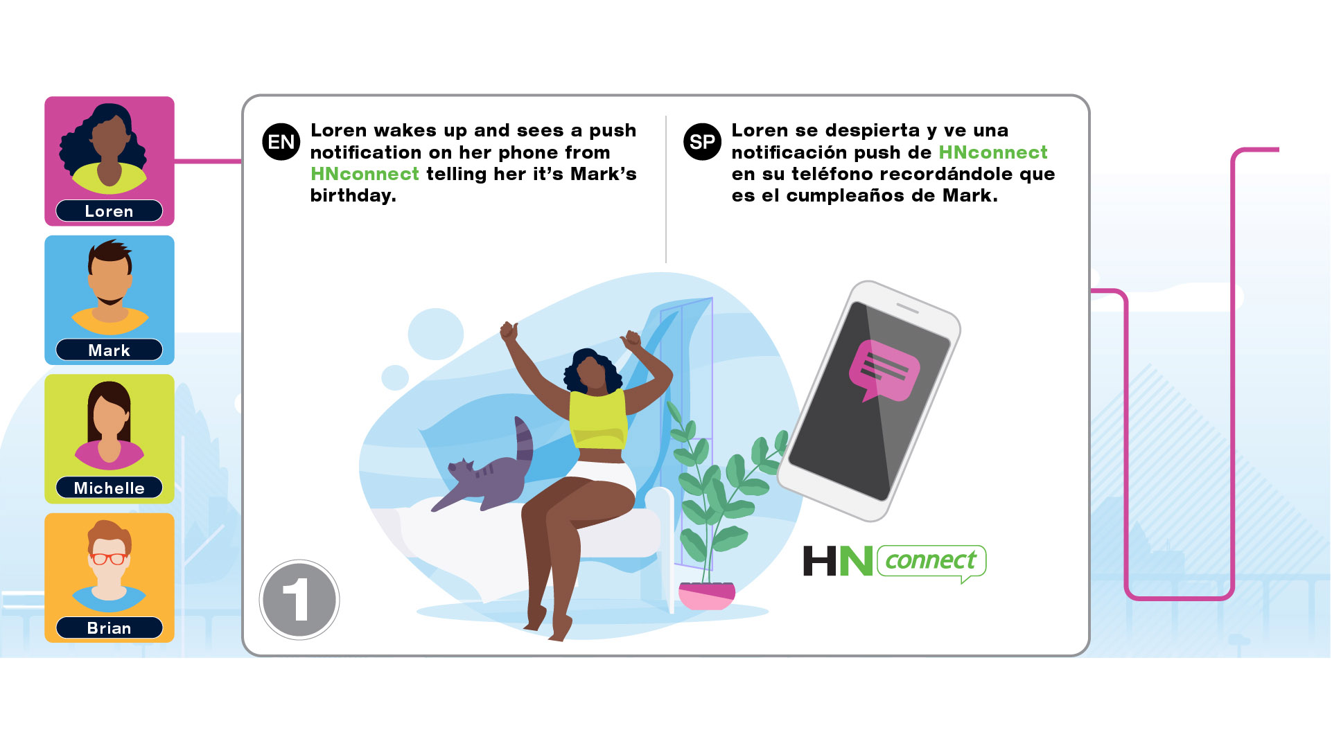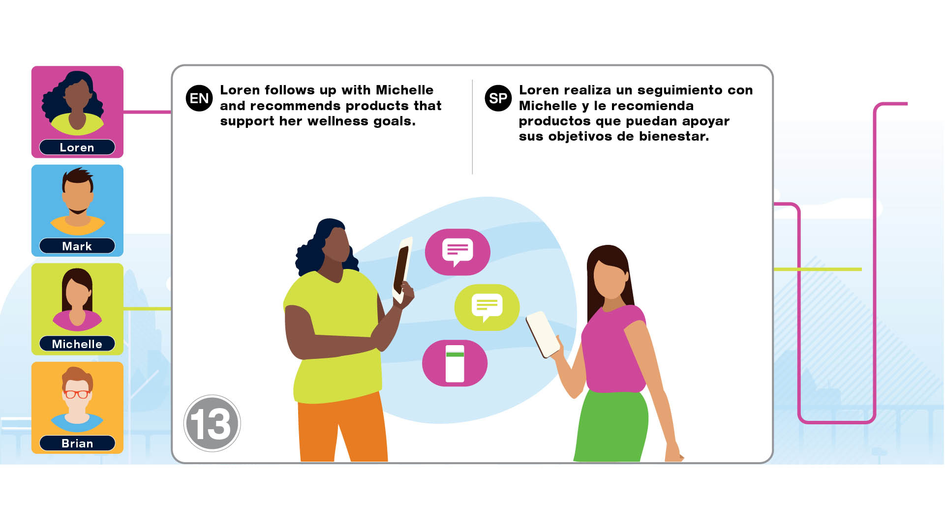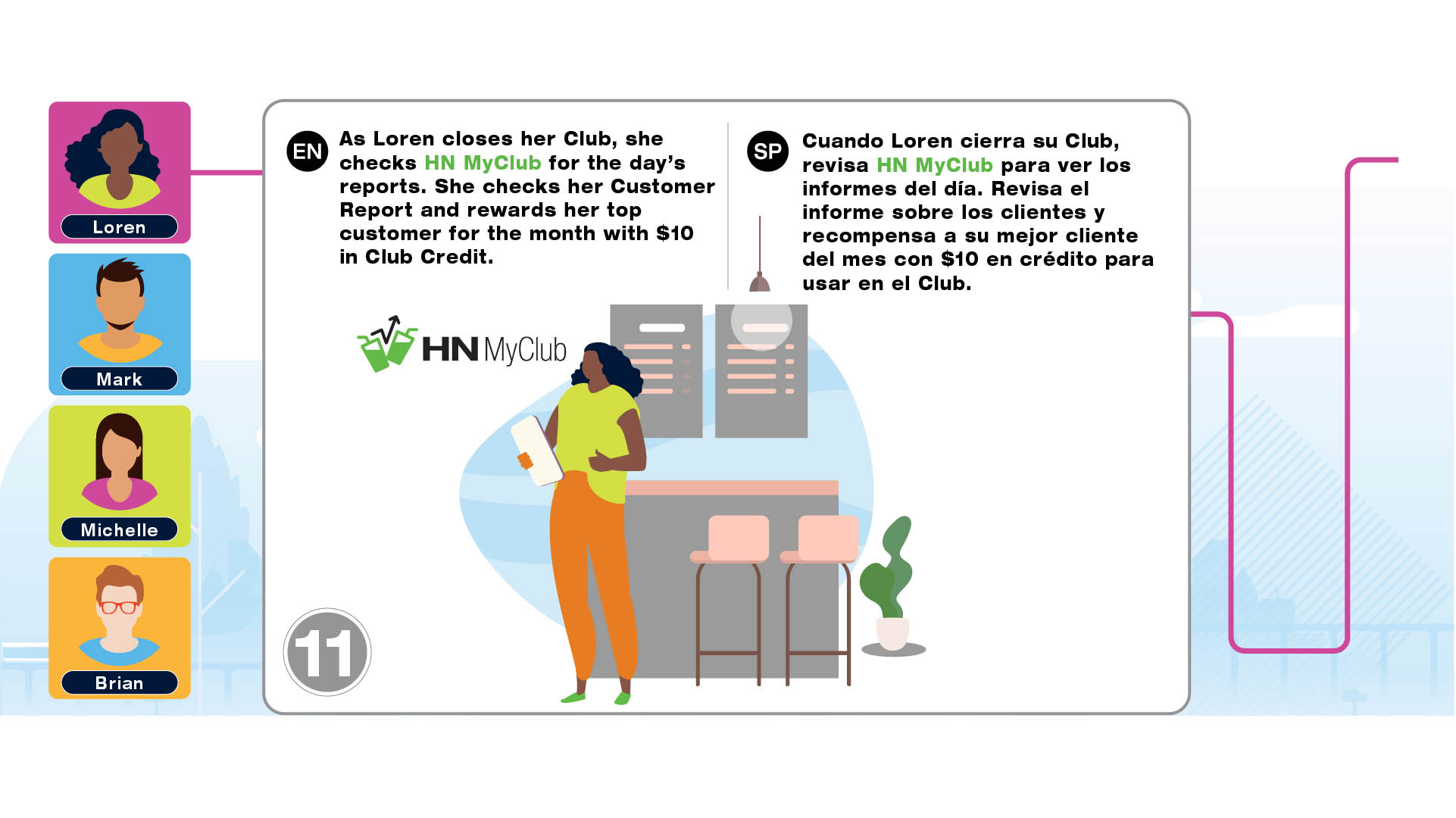 Infographic project for Herbalife Nutrition Technology Summit 2021 to introduce the tools such as HN MyClub, HN Connect, HN Grow, GoHerbalife and MyHerbalife Customer Direct. The illustrations tell the story of distributor and customer journey of everyday life and how technology tools help them to run the business and stay connected.